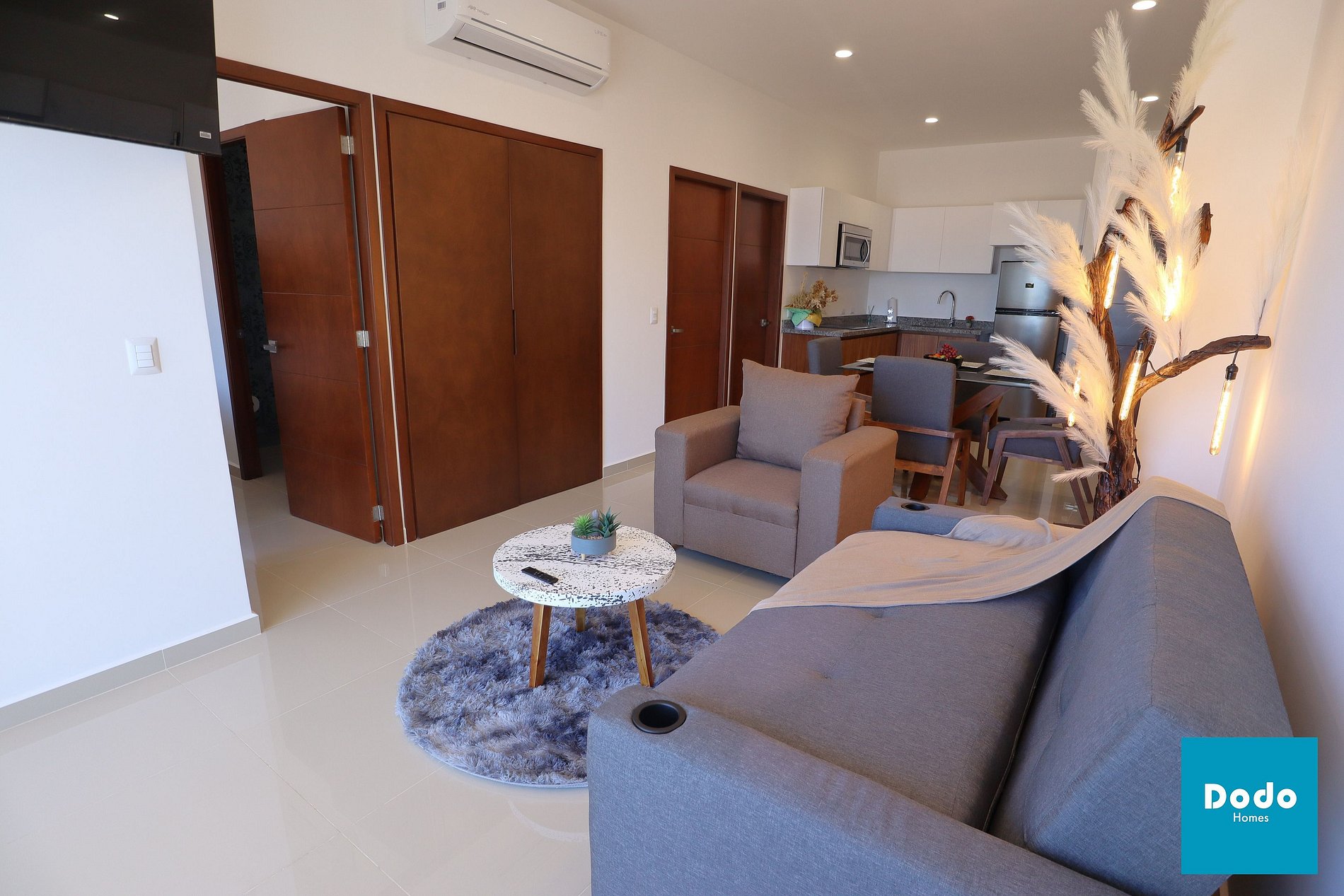 Este departamento de lujo cuenta con 2 recámaras, 2 baños, sala, comedor y una cocina completamente equipada, diseñado para hospedar cómodamente hasta 6 personas. Se sitúa dentro de un exclusivo complejo que brinda seguridad 24/7, acceso a 2 albercas, espacios comunes y una zona comercial en la entrada.